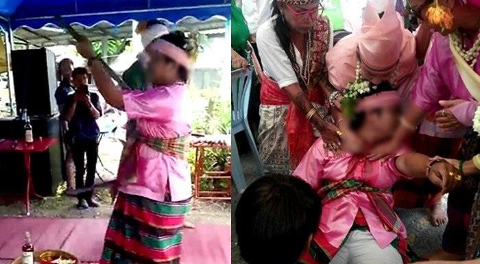 وأقدم الرجل البالغ من العمر 25 عاما بغرز سيف في صدره لمحاولة إقناع الجمهور بعدم الموت، أثناء تأديته طقوس عبادة أرواح الأجداد، بحسب ما نقلته " THE MIRROR".