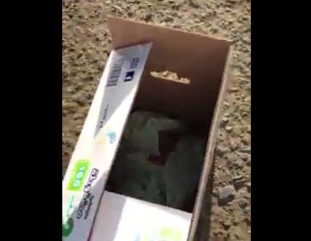 وأظهر مقطع فيديو متداول، الطفل الذي بدا أنه حديث الولادة وهو ملفوف بشاش أبيض وموضوع داخل علبة كرتون بجوار صندوق نفايات؛ حيث أبدى المواطنان اللذان عثرا عليه غضبهما من المشهد وتجاه مَن ارتكب تلك الفعلة.